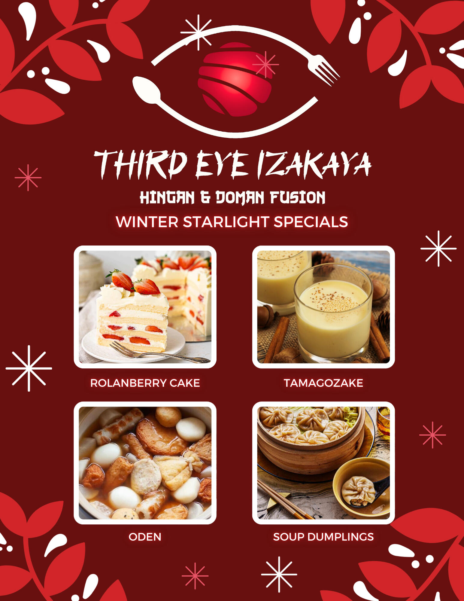 Third Eye Izakaya was created and founded by Ryo Setsu. Ryo Setsu's family is primarily from 'Doma', in which they've owned a family ramen shop by the name of Setsu Star. Upon meeting friends of this world, he worked previously at an eating hub, until gathering the funds to make his dream come true: starting his own restaurant where people can share fond memories.