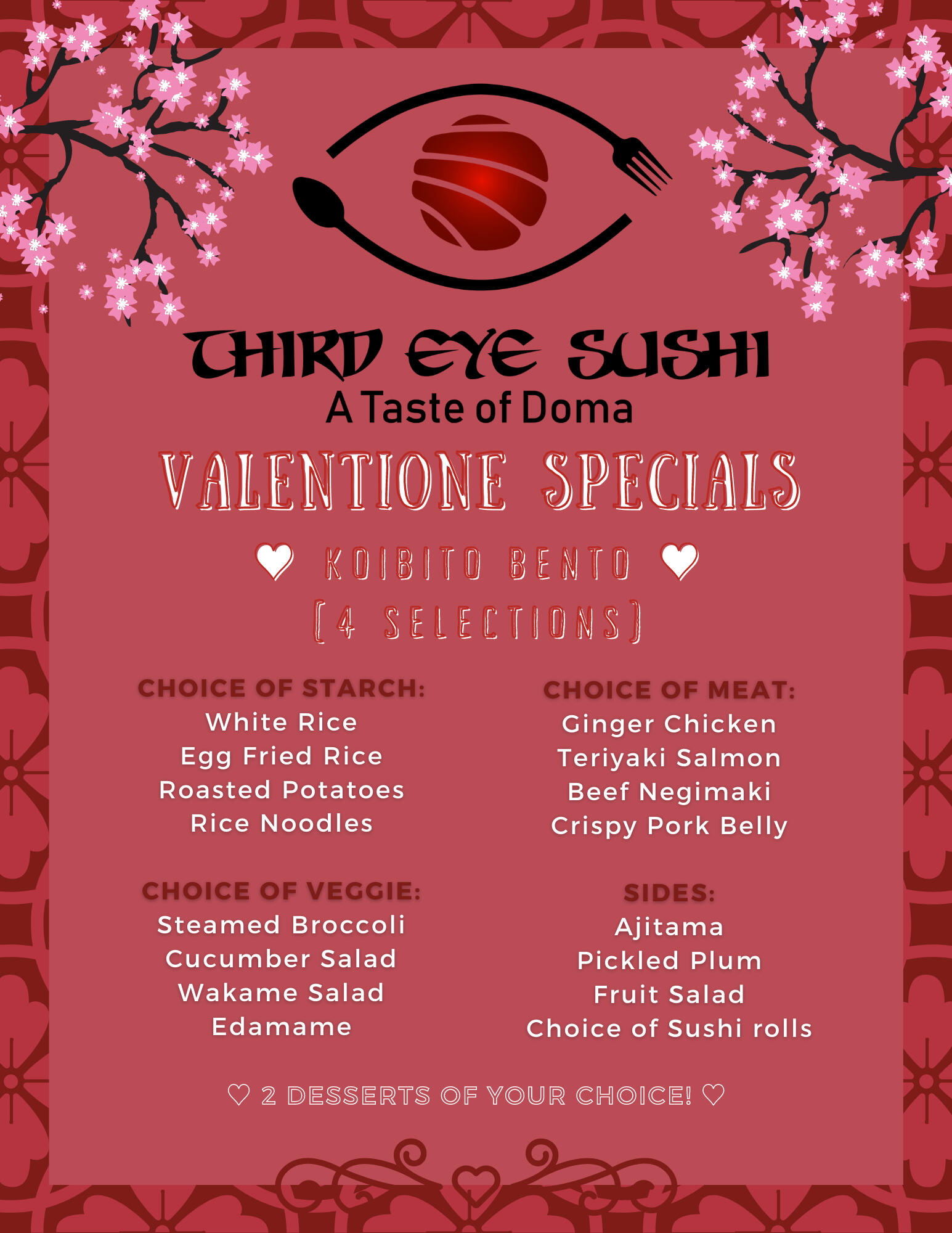 For the Valentione's Special, each partner will order FOR the other. You are creating each other's bentos! For sweethearts or friends!